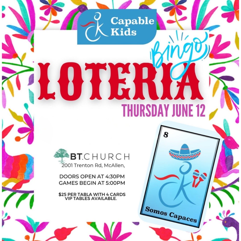 How about a fun night of Lotería for you and 7 of your fun friends?1?! Every $5 donation to the great cause of Capable Kids www.ckrgv.org gets you one entry for the great prize of a VIP Table for 8 valued at $250. So if you donate $20, you will get 4 entries. Give a donation and maybe you and 7 dear friends will bring your luck to the game while helping make a difference in the lives of many young people.